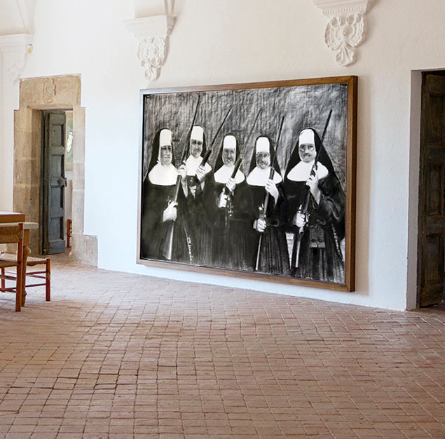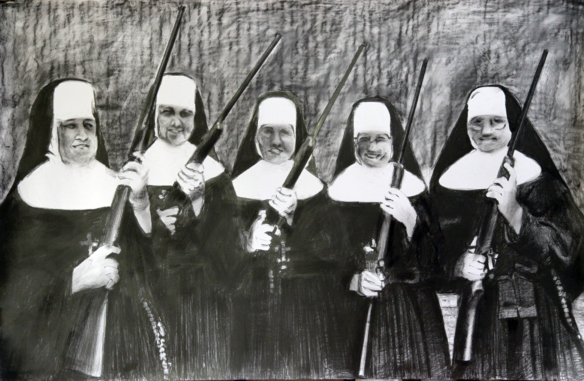 Las armas y la religión han caminado juntas muchas veces en la historia. Este cuadro no inventa nada. Solo lo pone frente a nuestros ojos, sin filtro, sin anestesia.