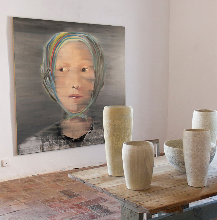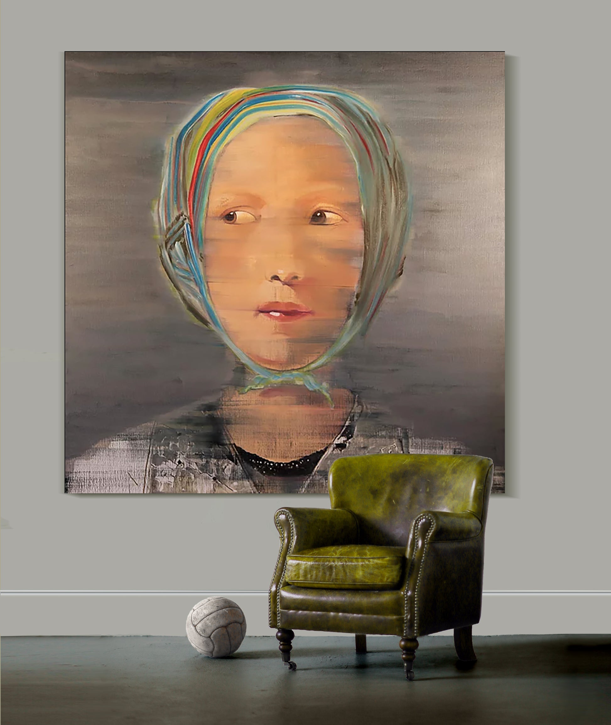 He rescatado su rostro del claroscuro barroco para convertirlo en centro absoluto. El misterio de su mirada ya no predice, sino que interroga. Las líneas de color que envuelven su cabeza rompen el tiempo y desdibujan el estilo: es La Tour, sí, pero también es otra cosa.