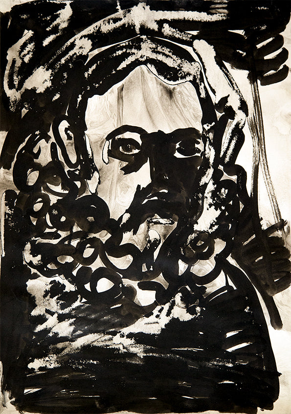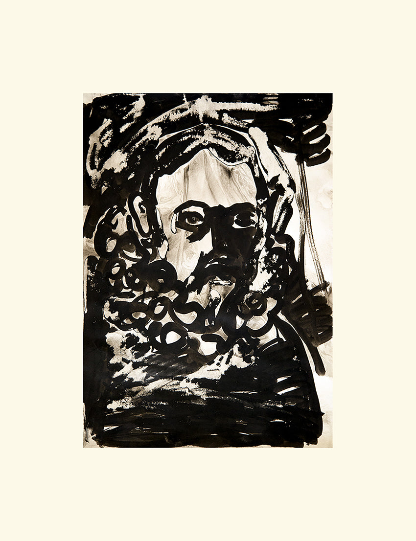 Yo lo he invocado con trazos densos, barrocos, como su pensamiento. Su mirada juzga, sí, pero también protege.