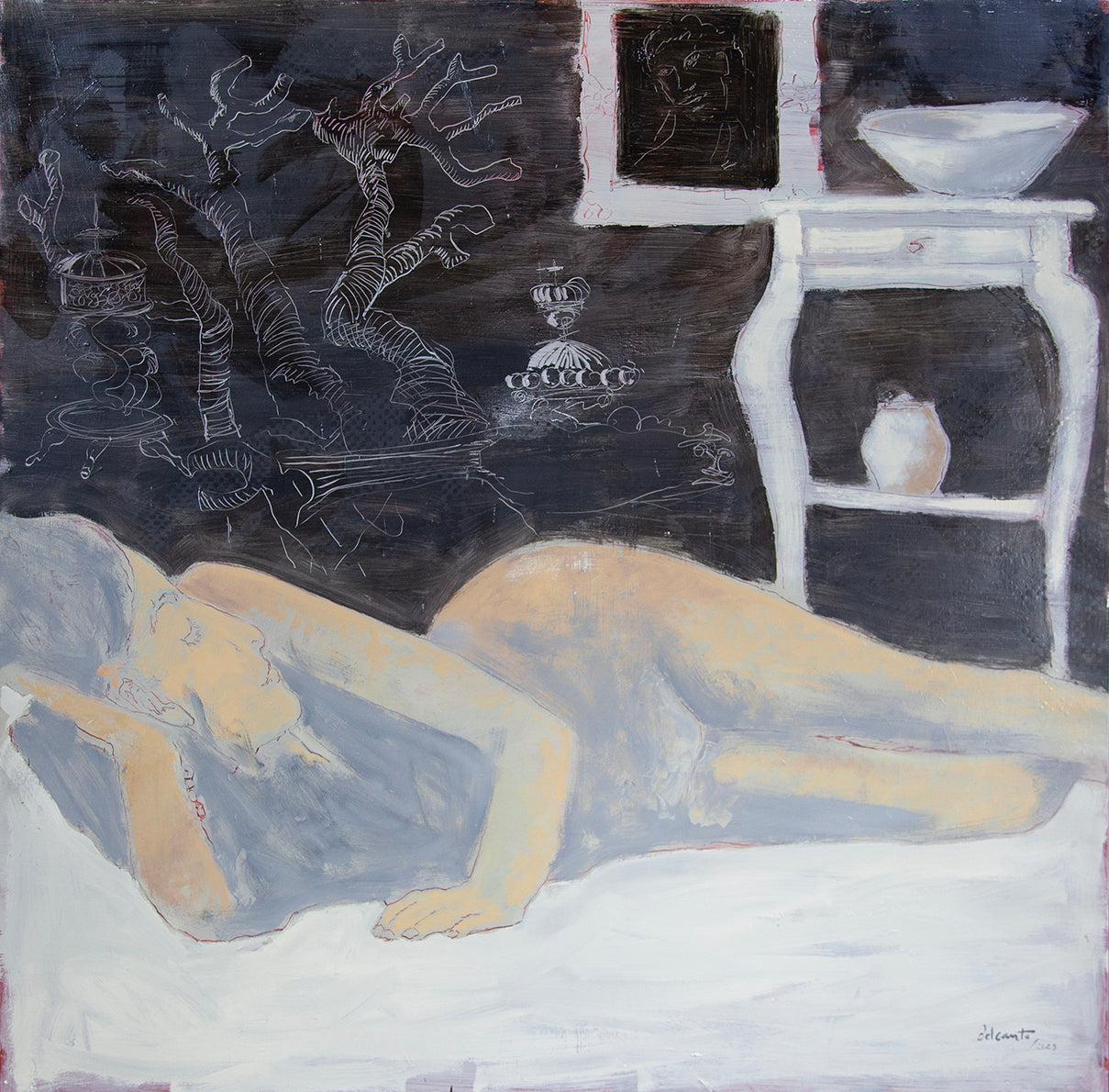 El cuerpo se entrega al espacio, pero la mente parece estar en otra parte.